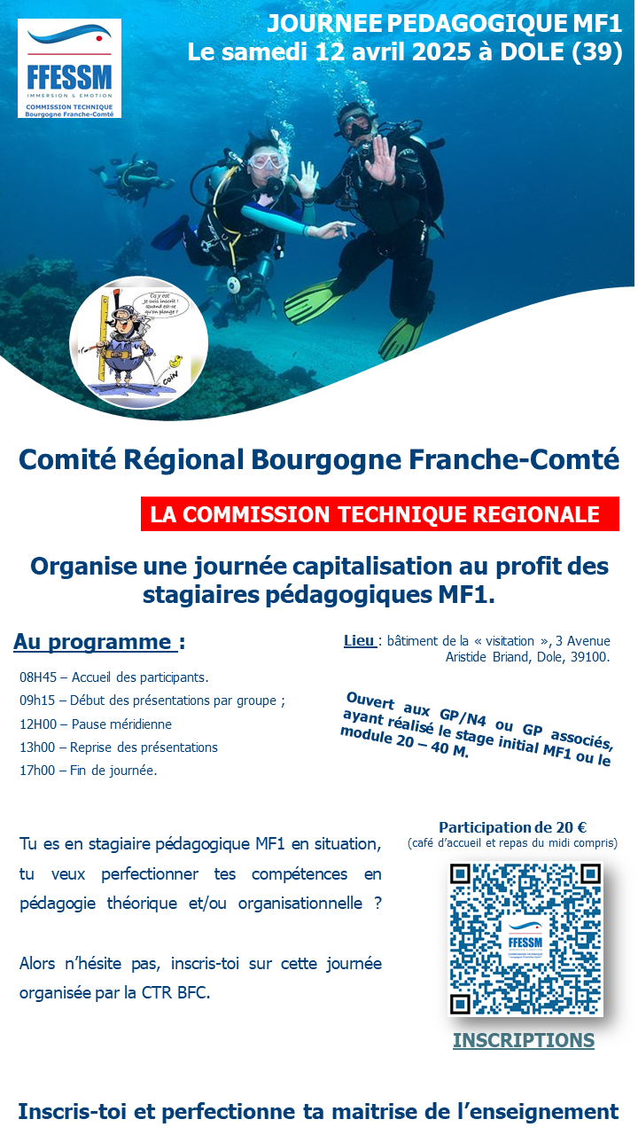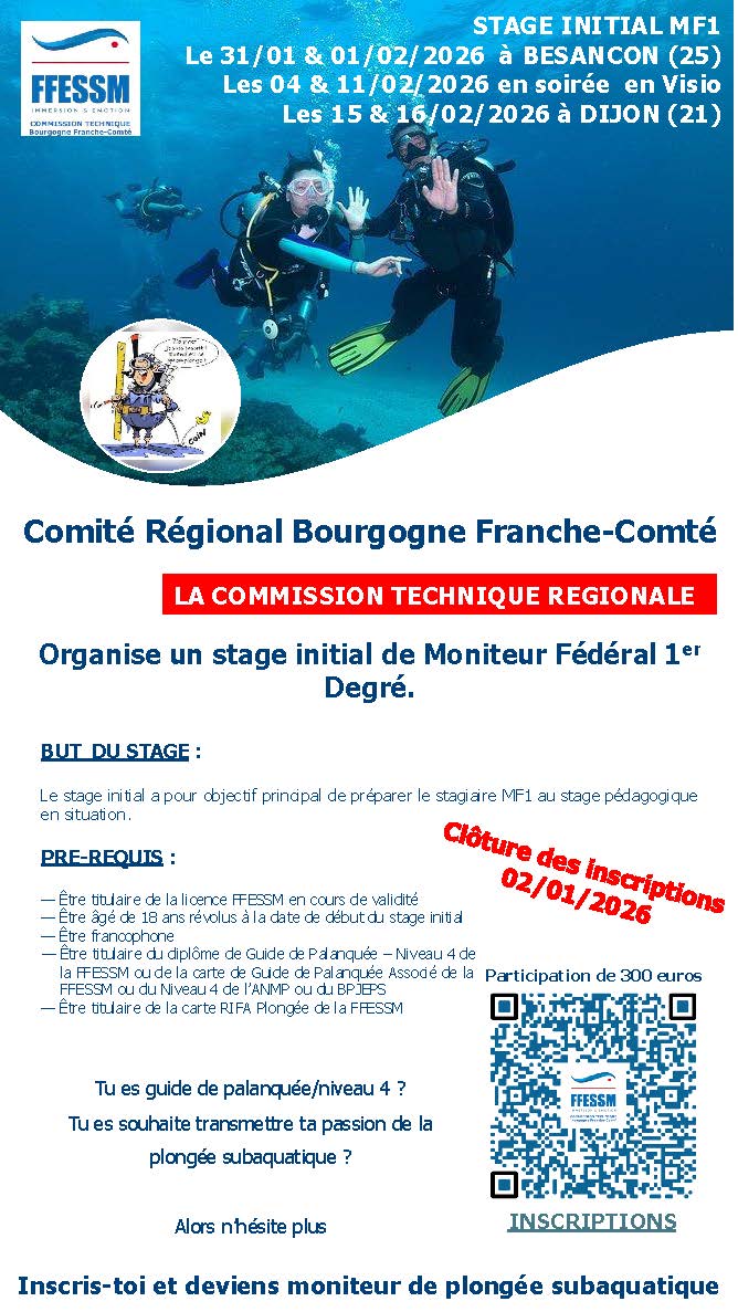 Pour toute interrogation concernant ce stage, vous pouvez adresser vos questions à technique.bfcffessm@gmail.com